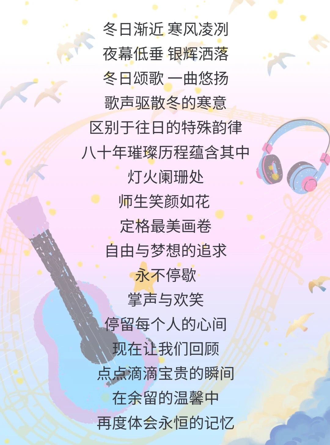 展望未来,让我们以“八秩数韵”为契机,不断增强历史主动精神和战略思维,书写好以教育强国建设支撑引领中国式现代化的新篇章。以“启新程”为动力,不断追求严谨、求实、自由、和谐,以更加坚定的信念,迈向未来的广阔天地!