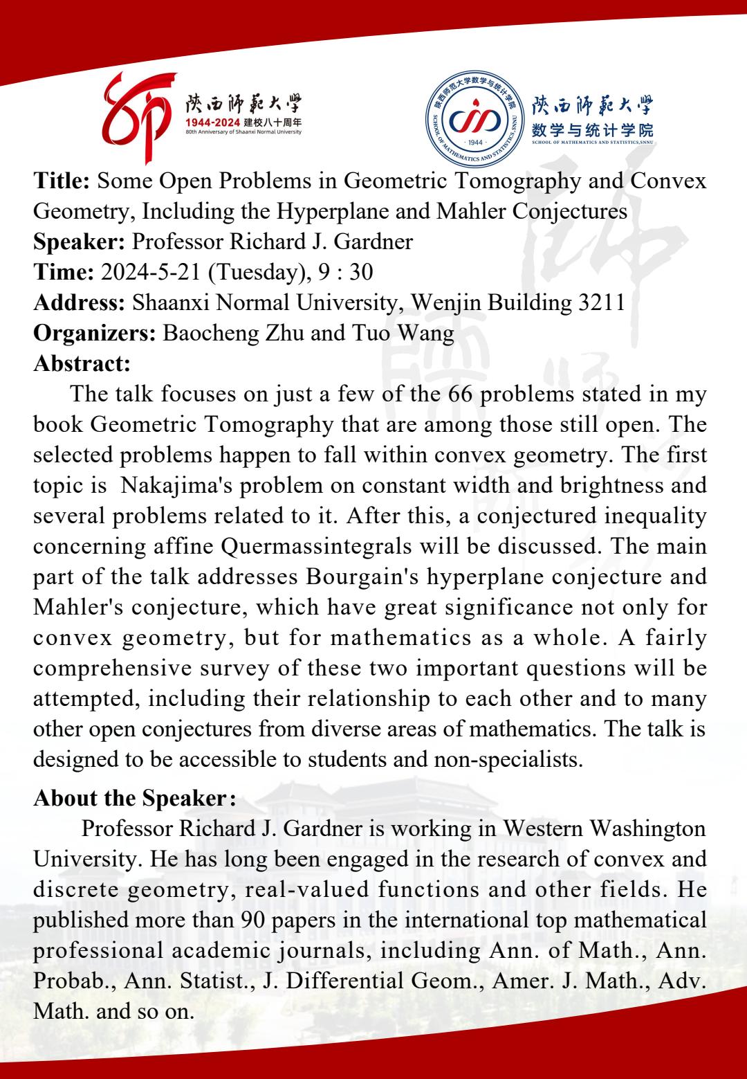 八秩同辉校庆系列40 X-Rays in Convex Geometry