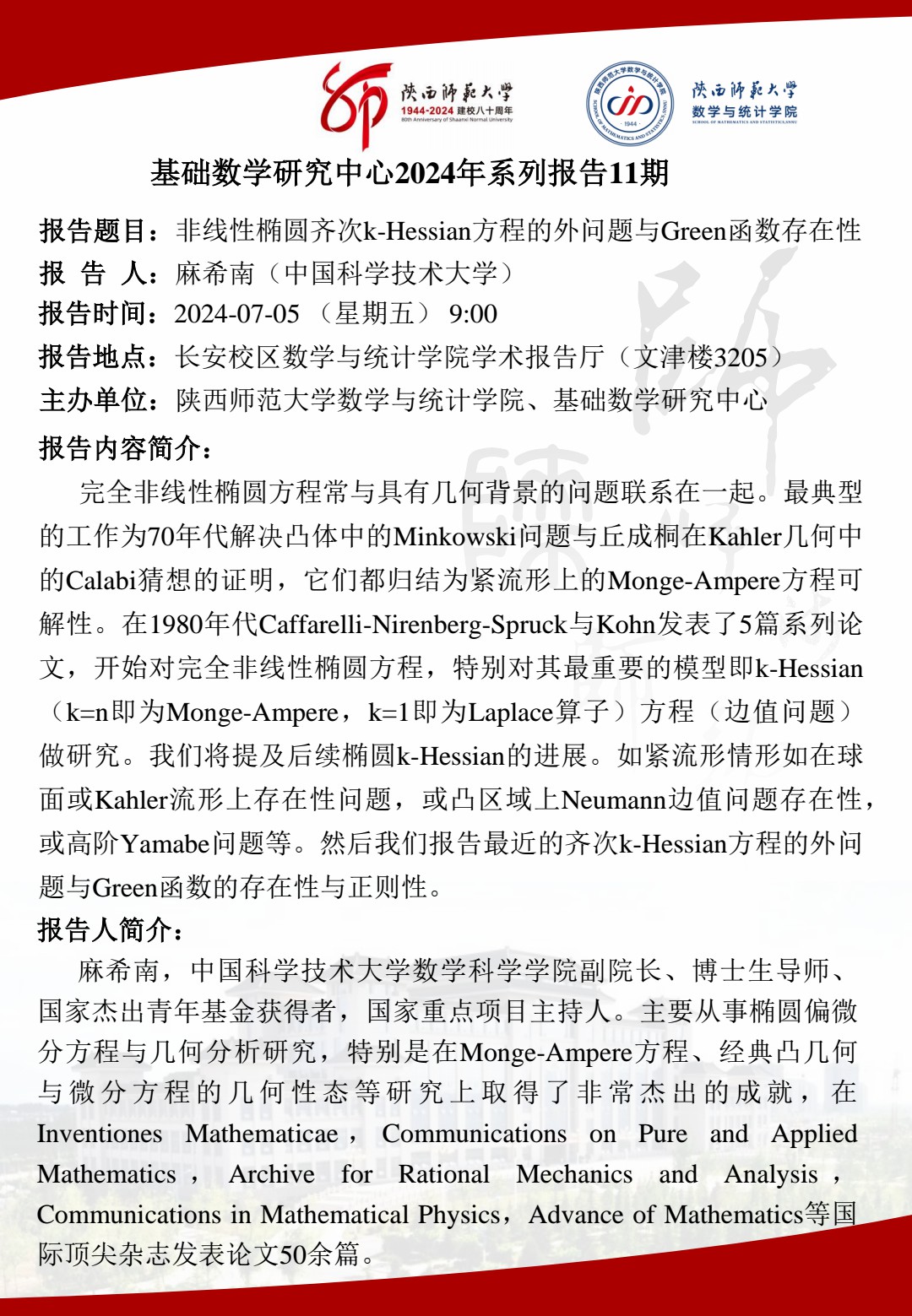 八秩同辉校庆系列65 非线性椭圆齐次k-Hessian方程的外问题与Green函数存在性