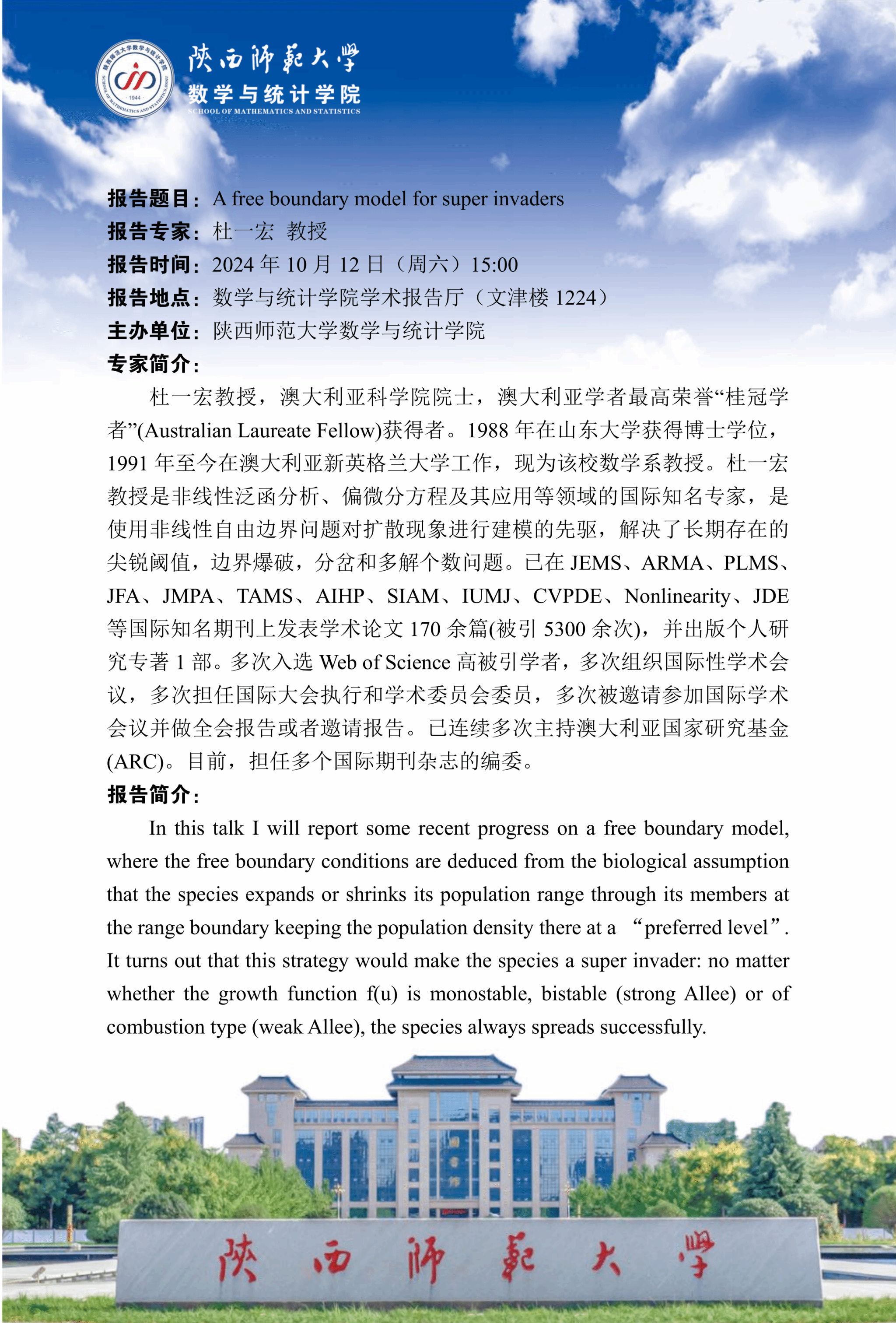 八秩同辉校庆系列90 A free boundary model for super invaders