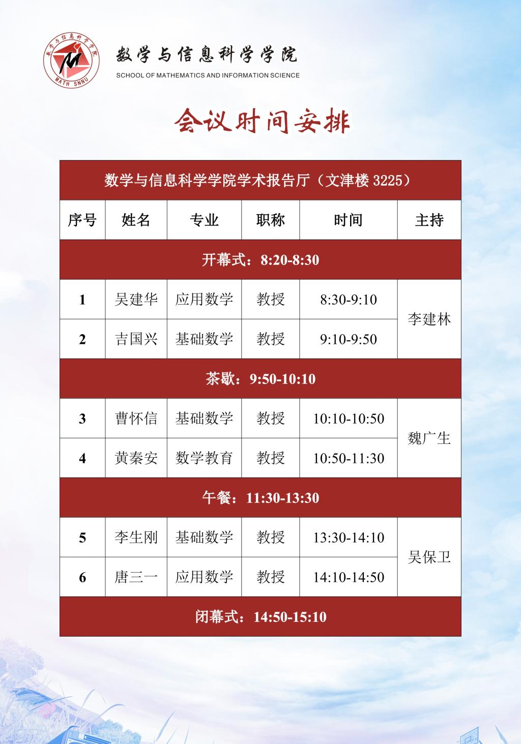 为了进一步推动公司“一流”团队建设,提高公司教师的科学研究水平,加强公司教师之间的学术交流,探讨各个领域的最新研究成果和前沿问题,数学与信息科学公司将于2020年1月10日在公司学术报告厅举行2019年度学术报告年会。