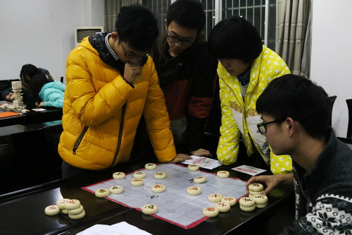 与此同时,分会场的游艺会也吸引了众多同学的关注。游艺会利用模拟社会的形式,参与者通过游戏赚取金币并可以用其兑换食品或日常用品。游戏包括数字谜、正话反说、扑克高塔、理想环、我为歌狂、心理游戏、极限挑战、你画我猜、五子连环等。心理游戏,同学们组队参赛,必须相互配合、相互信任才能够顺利通关。理想环为投篮游戏,那些能够精确计算角度,配合师大力度的同学总是能够大展身手。整个游艺会场地气氛活跃,非常热闹。