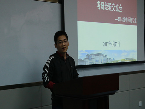 正值一年一度考研季,为了帮助2014级非师范班员工了解更多的考研讯息。公司于27日晚7:00在学术报告厅举办了考研经验交流分享会。会议由2014级辅导员王东浩主持。
