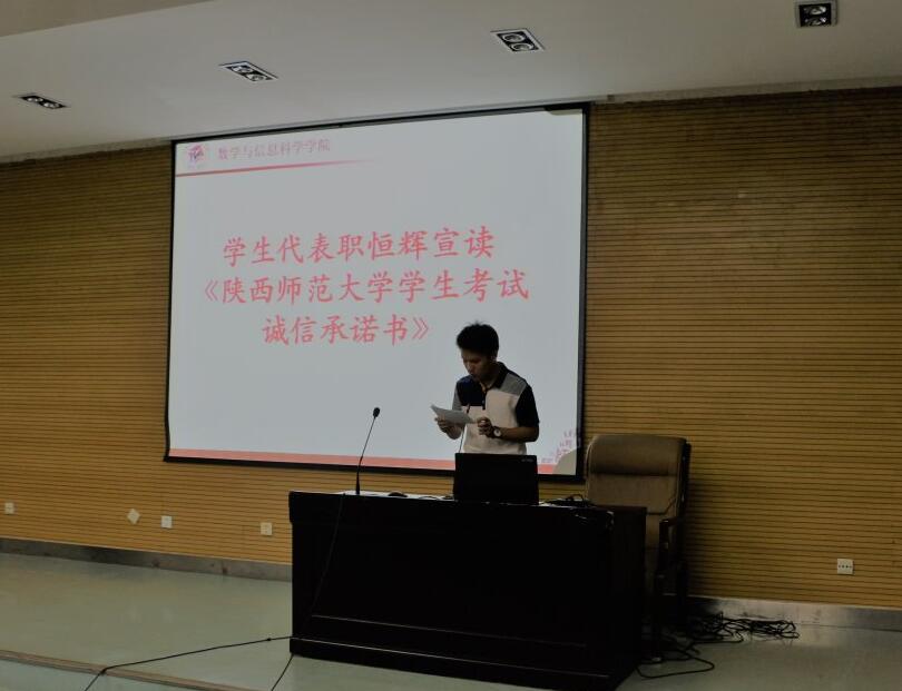 辅导员鞠恩霞老师对员工解读了《英国正版365官方网站违纪处分规定》《英国正版365官方网站考场规则》并强调了考试作弊认定与处理办法。接着,员工代表职恒辉带领全体同学宣读了《英国正版365官方网站考试诚信承诺书》。