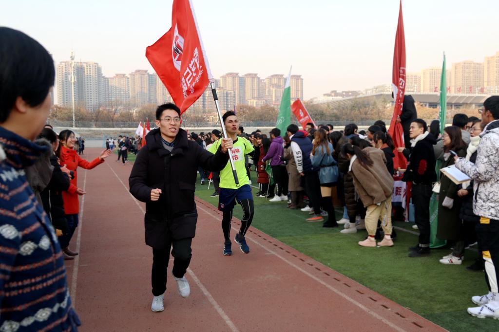 公司最后一棒艾克拜艾力·那曼同学更是承载着同学们殷切的期盼,使出自己最后一滴汗水,拼搏着自己所有的可能性,他的身后是飘扬着的数科院院旗,而在红色旗帜的护送下,艾克迅速到达终点,奠定数科院亚军的地位。与此同时,党委副书记邹尚田,团委书记王鑫,各级辅导员和同学们都为这历史性的一刻发出了巨大的欢呼。