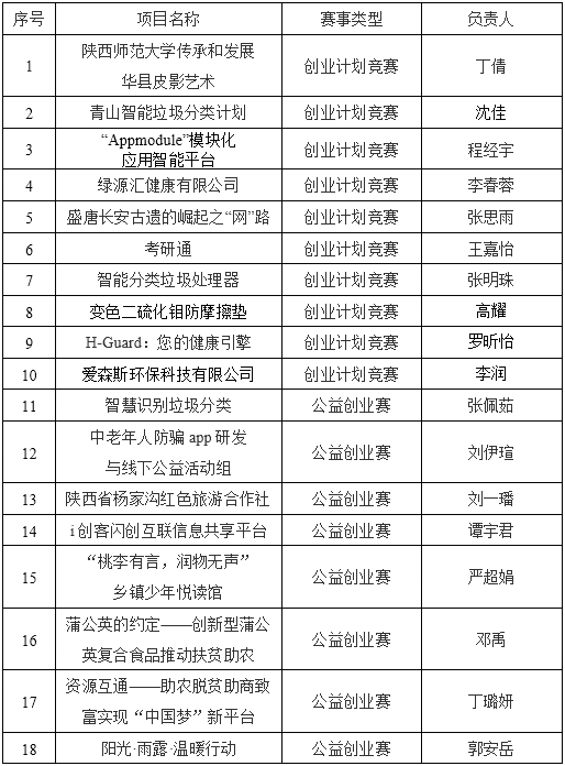 经自主报名,班级推荐,同时结合公司意见综合考虑,拟确定第十二届“创青春”老员工创业大赛公司初赛答辩项目18个,名单公示如下: